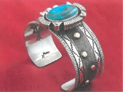 Nelson Garcia – Nelson was born in 1955 in the village of Santo Domingo Pueblo, New Mexico. As one of the eldest of a large family, he shared in the responsibilities as he worked in the fields and helped his father, Joe Jay Garcia, a silversmith with talents in traditional designs and Heishi necklaces. He has won many distinguished awards at some of the nation's largest art exhibits and his jewelry has even traveled into the heart of Europe with shows in Germany, Austria and Switzerland.